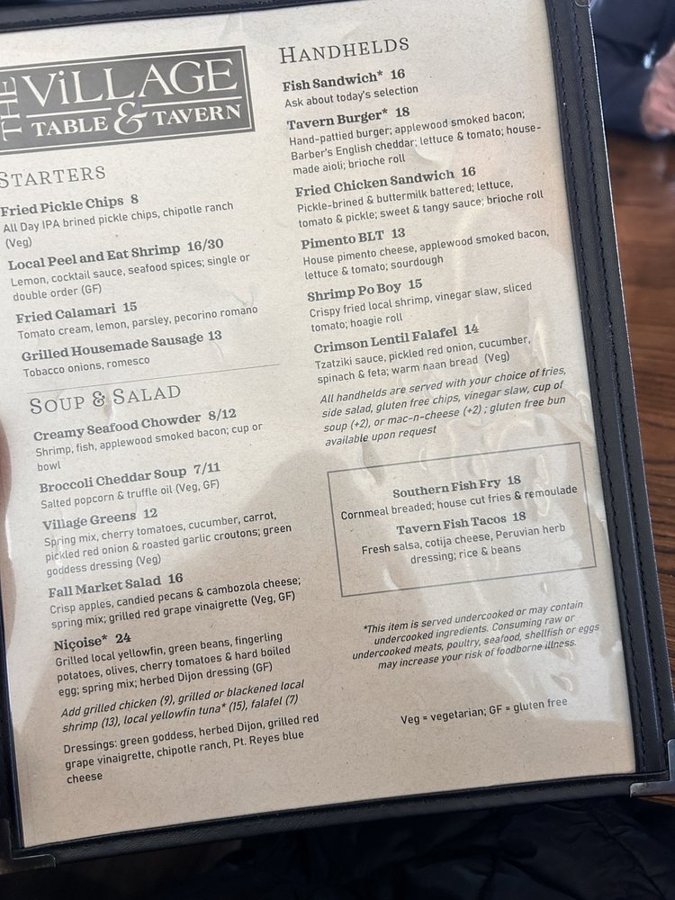 Customers rave about the delicious food offerings at The Village Table & Tavern. From seafood chowder to beet and goat cheese salad, the menu features a variety of flavorful dishes that are sure to satisfy your taste buds. One standout item is the fish and chips, which are battered with cornmeal for a unique twist on a classic dish. The goat cheese hush puppies with sweet butter are also a must-try according to diners.